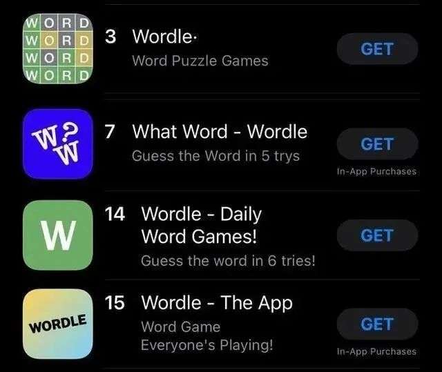 在App Store,大批打着《Wordle》旗号的山寨游戏招摇撞骗。苹果很快表明了态度,除了保留老游戏《Wordle!》外,雷厉风行地封禁了一批冒牌货。有的盗版游戏开发者还在推特上遭遇了一众热心网友的口诛笔伐。