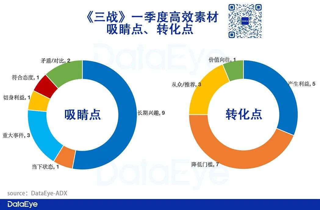 △《三战》高效素材:以三国题材、战斗场面吸睛(长期兴趣),通过讲解游戏特色、玩法套路,引发转化(降低门槛、好奇尝试)