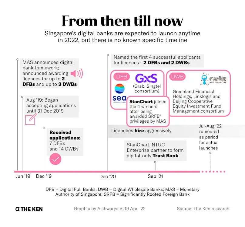 尽管新加坡金融管理局告诉The Ken,预计他们将在2022年推出,但还没有确认何时推出。“实际的启动将取决于每家银行落实必要的人员、框架、系统、政策和程序所需的时间,以满足所有相关要求和许可前提条件。新加坡金融管理局一直在密切跟踪他们的进展,并评估他们的实施质量。”新加坡金融管理局的一位发言人说。