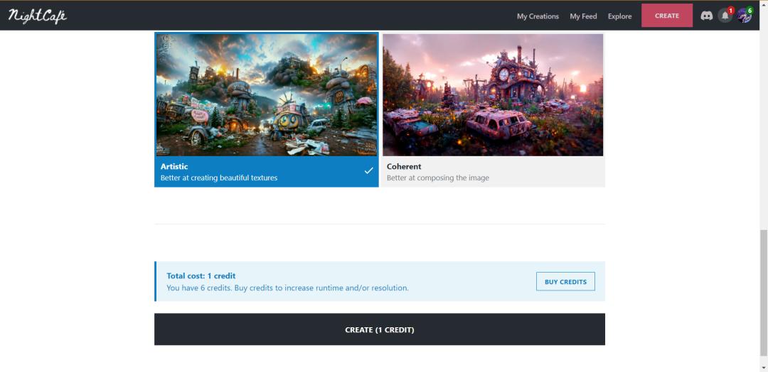 相比起 Disco Diffusion,NightCafe 用起来就简单多了。