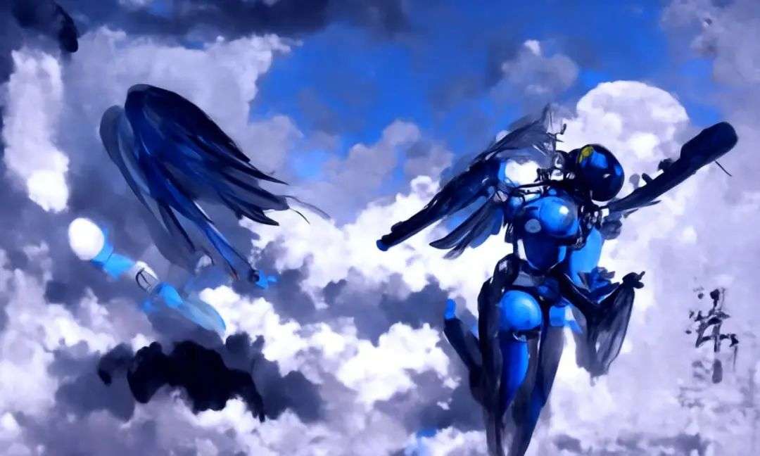 ▲关键词:一张机械天使在夜空中挥动翅膀的画,蓝色配色