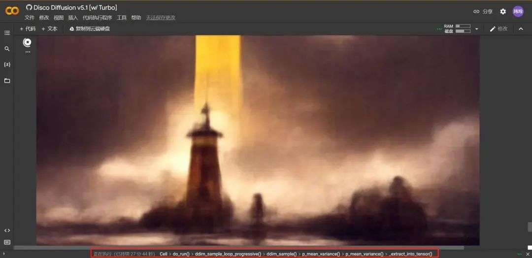 免费用户一般分配到的是 Colaboratory 的 Tesla K80 显卡电脑,线上渲染速度比较慢,一张默认尺寸和迭代次数的图大概需要一个半到两小时才能完成。
