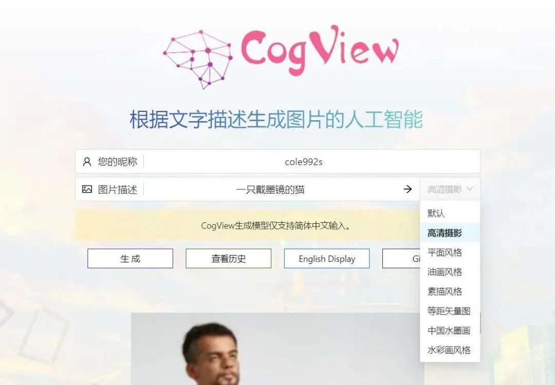 Cogview 的好处是支持中文关键词,在现实照片生成这方面有优势,无法自定义图片尺寸。