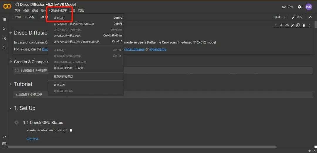 初次打开 Disco Diffusion 的使用界面你可能会被大量的代码吓到,但实际上只要按照如下步骤调试,要使用它还是很简单的。