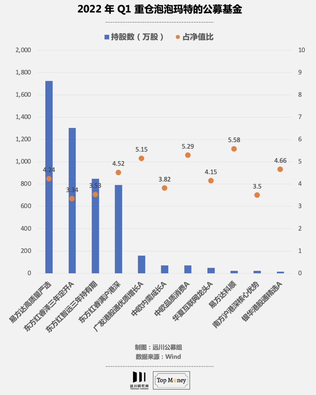 但从最新的 2022 年一季报的重仓股披露上看,萧楠和孙伟这两位最早买入大量泡泡玛特的基金经理则表现出了不同的态度。