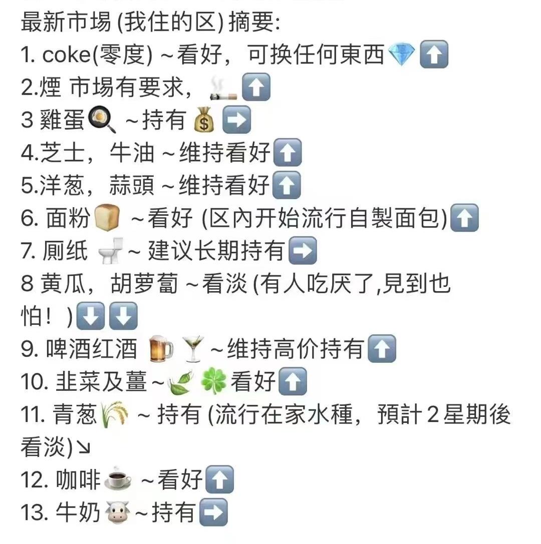 说到底,二级市场还是追求护城河的。 在一堆新消费品里,相比盲盒的独特,酒馆和奶茶的可替代性就高多了。 疫情一来,潮水一褪,真要看酒水饮料,茅台可以用来杀菌,可乐才是纯纯硬通货。 光是看以物换物的行情,根本就没有新消费的名字。