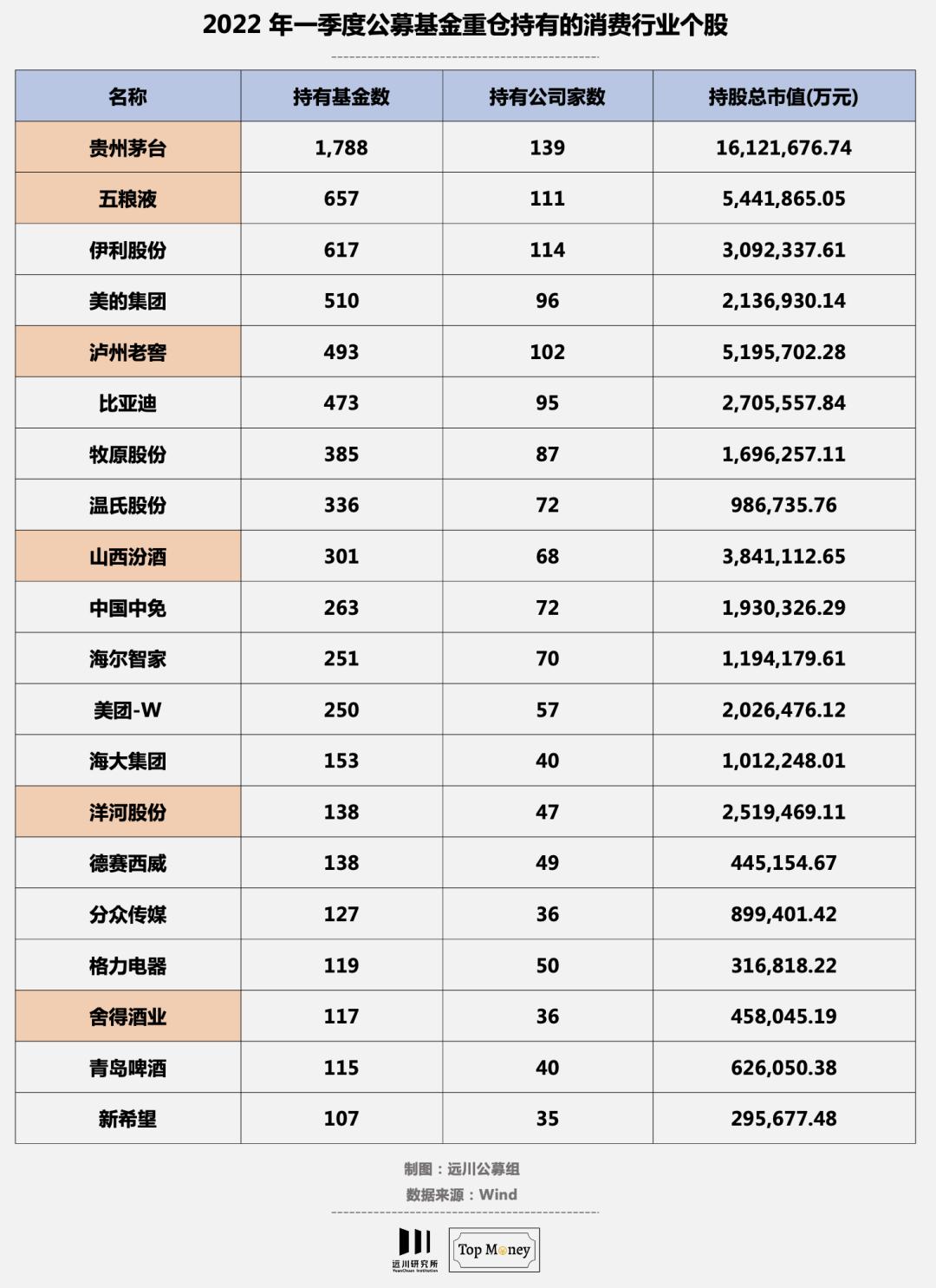 在 Wind 上拉一下公募重仓的消费行业上市公司,持仓是非常同质化的。 人手一套白酒全家桶,就算把经销商的数据卷到日级别,基金与基金的差别与其说是在选股,不如说是在仓位。 有的集中度高一些波动就大一点牛市就跑得快一些,有的集中度低一些波动就小一点熊市就跌得慢一点。