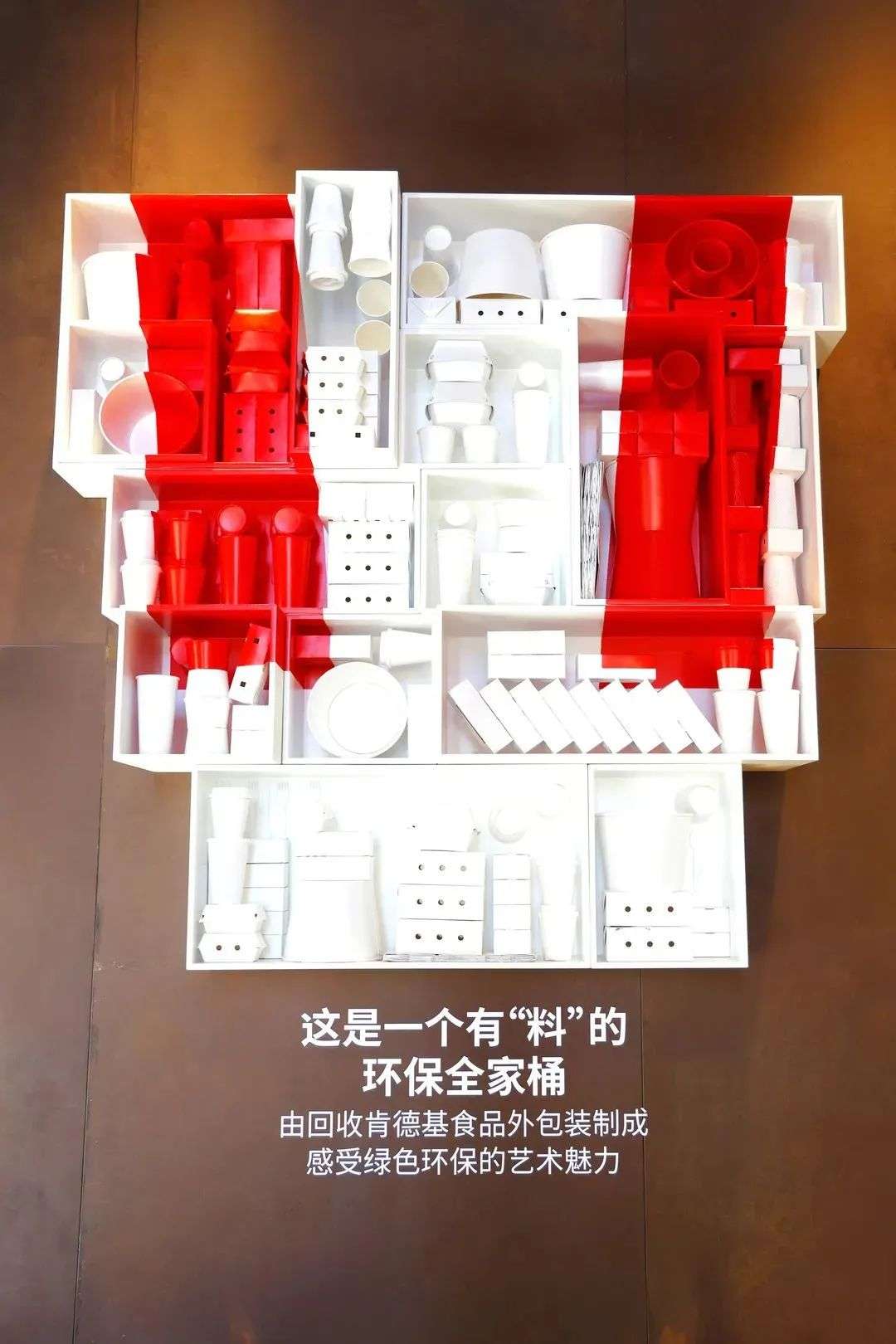 与此同时,肯德基“创绿先锋店”也为消费者打造了一个全方位体验、了解和参与环保的绿色餐厅空间。肯德基北京“创绿先锋店”中矗立的特殊“全家桶”,由回收肯德基食品外包装制成,展现绿色环保的艺术魅力。而在杭州“创绿先锋店”,消费者可通过店内的艺术墙洞,窥见未拆除的餐厅前两代装修材料,了解到餐厅升级改造时的环保巧思。