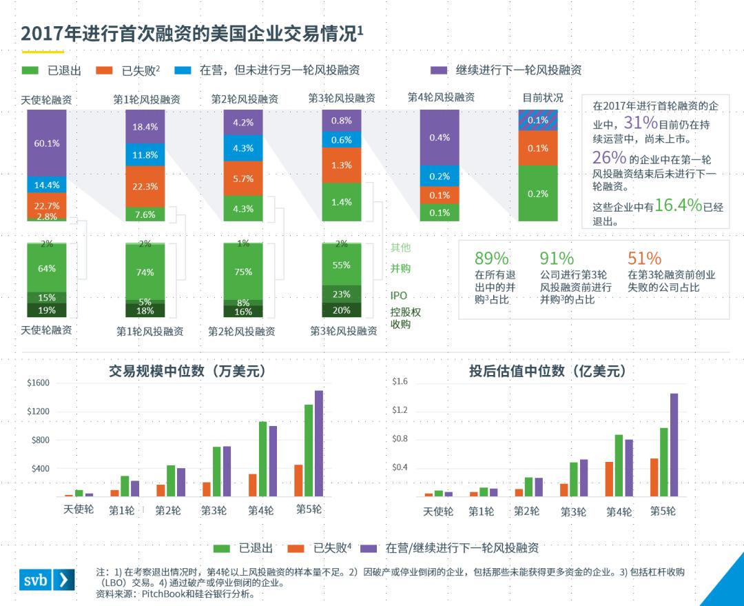 企业在退出时,人才也是决定性因素。收购式聘用是收购早期企业的首要原因,科技公司和其他初创企业青睐专业人才。例如,在过去十年中,Alphabet在人工智能(AI)领域进行了14次收购。就价值创造而言,私有化时间更长的公司,其估值比创业失败或早早实现退出的公司更高。这表明,一家公司如果不退出,那么它将从随后的每一轮融资轮次(至少到第五轮)的大幅估值提升中受益。