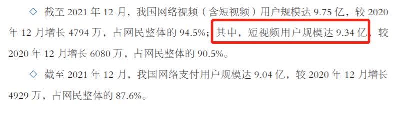 短视频用户占网名比例,图源《中国互联网络发展状况统计报告》
