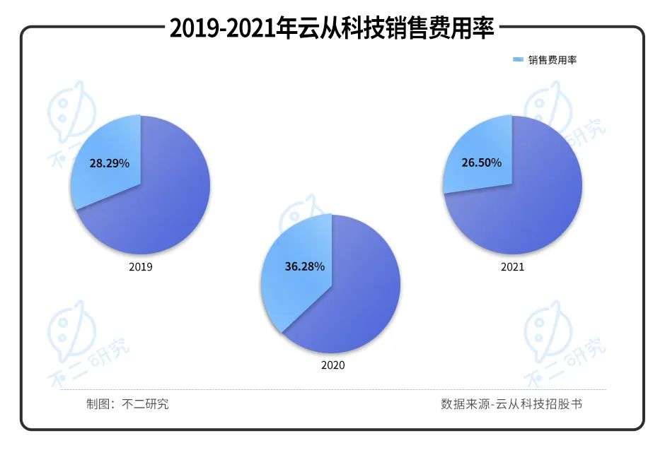 此外,销售费用率也在摊薄净利润。2019年~2021年,云从科技的销售费用率分别为28.29%、36.28%和26.05%,高于可比上市公司的平均水平。