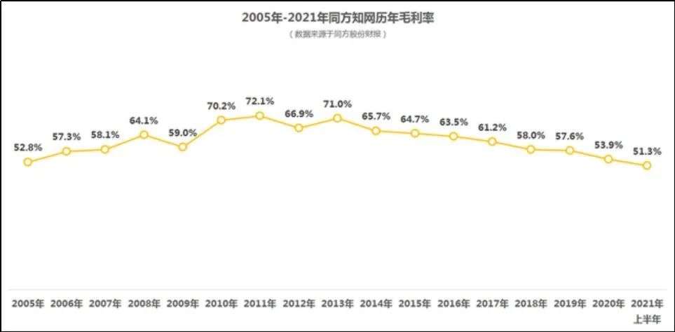 (2005年-2021年同方知网历年毛利率,图源:网络)