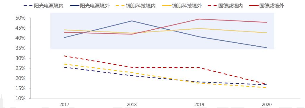 图2:国内逆变器企业境内外业务毛利率对比 资料来源:兴业证券,36氪整理