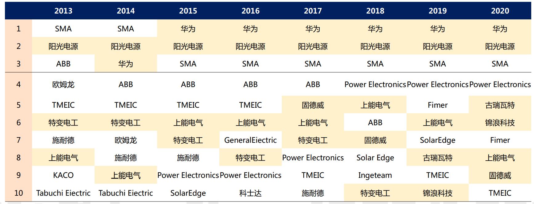 图4:全球十大逆变器企业市场份排名 资料来源:兴业证券,36氪整理