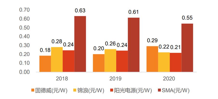 根据天风证券,受制于成本因素,海外逆变器龙头SMA产品平均价格高达0.6元/W,而国内组串式逆变器企业出口价仅约0.2-0.3元/W。