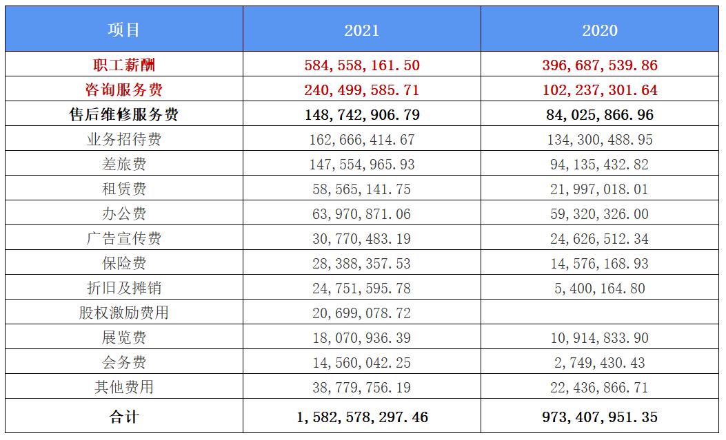 首先是在销售费用方面,公司2021年的销售费用高达15.83亿元,同比增长62.58%,大幅超过营收增速,特别是在2021年四季度,单季销售费用就达到7.21亿元,几乎与前三个季度的总和相当。