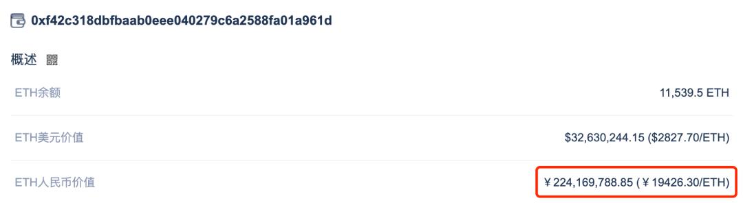 按照目前的价格,这些 ETH 总价值 2.2 亿人民币,妥妥肉疼。