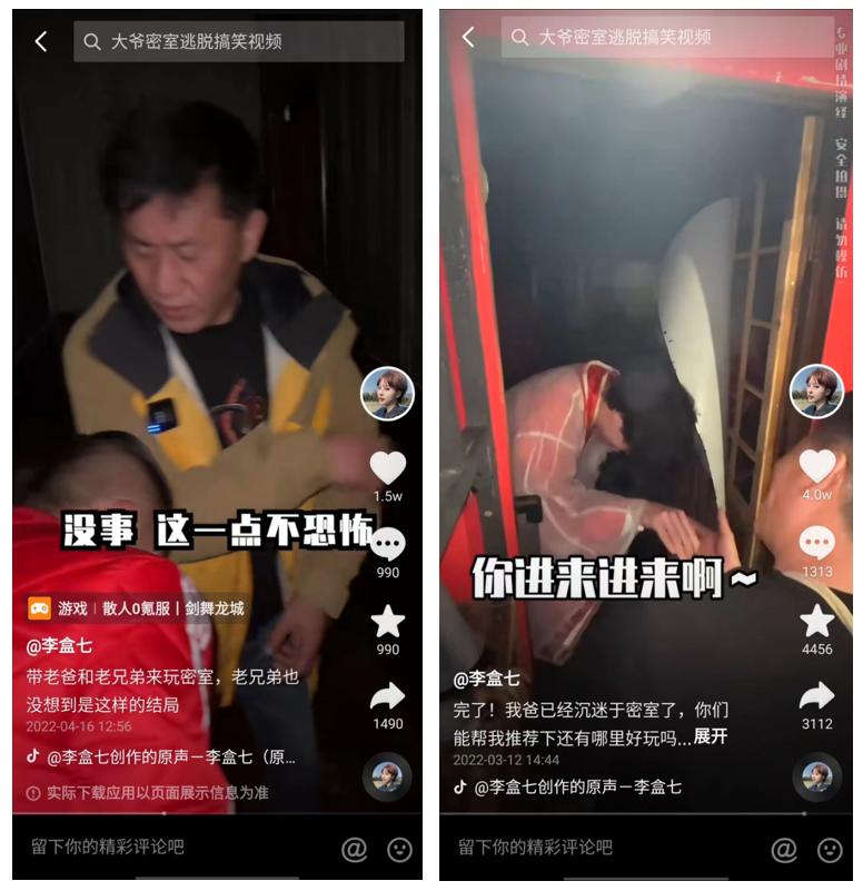 这类视频的重点在于年轻人可以和父母“玩”到一起,父母虽然年纪大了,但接触了这些新鲜事物后,依旧可以充满激情地玩起来。