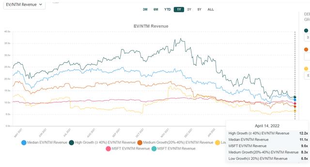 MSFT股票NTM收入倍数对比高增长SaaS同行(来源:Public Comps)