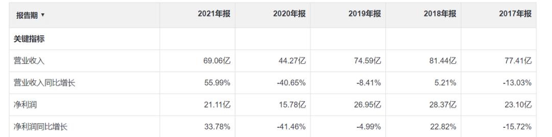 增长值得肯定,但如果对比往年财报,养元饮品仍然没有从疫情的阵痛中恢复过来。2021年的营收和利润仍然低于2019年、2018年、2017年等往年水平,其增长更多的要归功于2020年同期基数相对较小。
