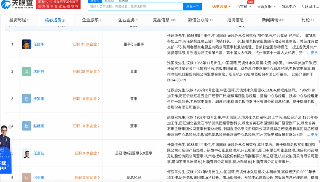 天眼查APP公开信息显示,老板电器董事长任建华1956年生人,副董事长为任富佳1983年出生,其余董事会成员均为“50后、60后、70后”,董事会平均年龄为57岁。