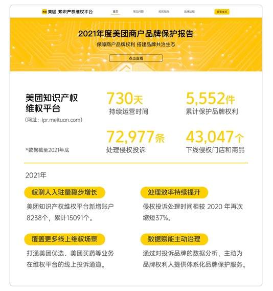 美团发布2021商户品牌保护报告:拦截疑似侵权店铺和商品超606万次 同比增长200%