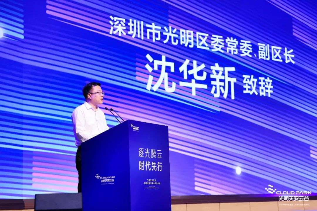 深圳市光明区常委、副区长沈华新在签约仪式上致辞,他表示,“光明区在政府的支持和投入下,正在建设世界一流的重大科技基础设施集群,集聚世界一流的高等院校和研究机构。此次光明天安云谷一期首批项目集中签约仪式,是实现多方领域的合作,发展共赢的,是共同推进光明科学城建设与发展重要性节点。最后,我衷心地祝愿此次光明天安云谷一期首批项目集中签约仪式圆满成功。”