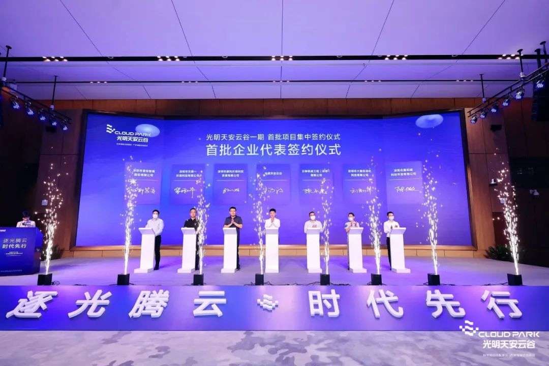 在刚刚过去的光明区一届四次党代会中,区政府提出了光明要集中力量打造“三地”,即:原始创新策源地、科研经济先行地和创新人才集聚地。4月26日,光明天安云谷主办以“逐光腾云 时代先行”为主题的光明天安云谷一期首批项目集中签约仪式,涵盖首批企业签约、战略合作伙伴签约、品牌商家签约。深圳市光明区常委、副区长沈华新,光明区科技创新局陈晓青局长,光明区工业和信息化局占川主任等相关部门负责人出席签约仪式。