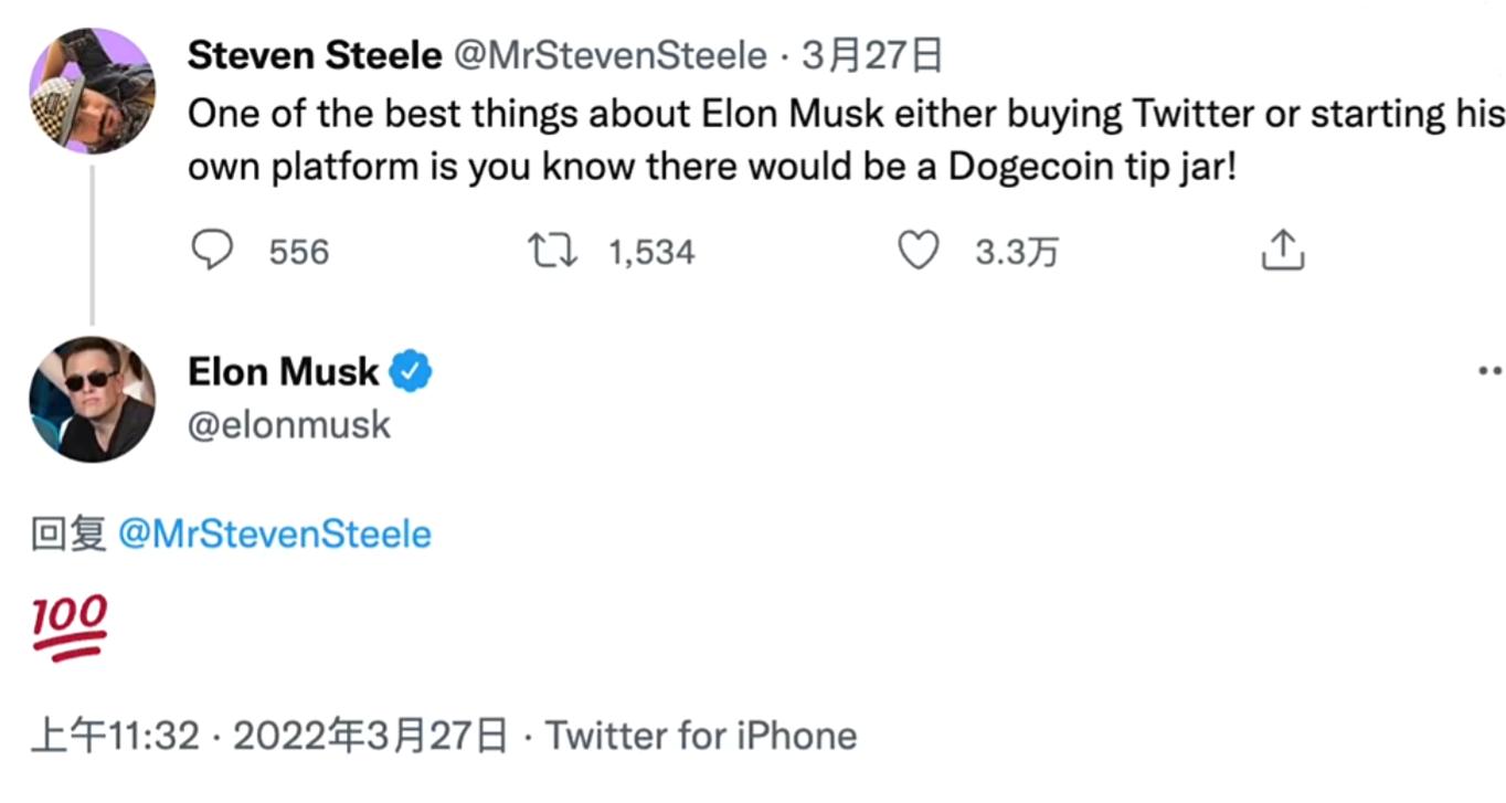 甚至就在一月前,马斯克预告正在考虑创建新型的社交媒体后,一位YouTube博主Steven Steele回应称:“不管马斯克收购Twitter还是创建新的平台,他一定会让这个平台支持狗狗币小费功能。”