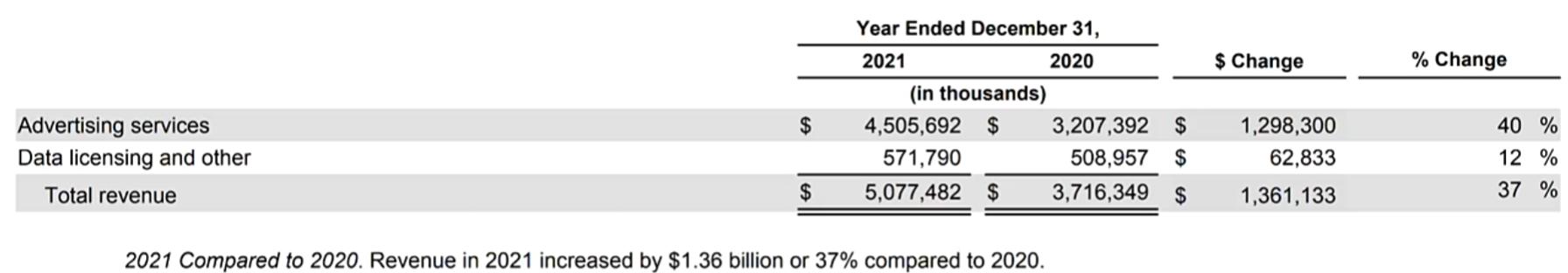 2021年,Twitter的营收为50.8亿美元,同比增长37%,而其中广告服务收入占比超80%。
