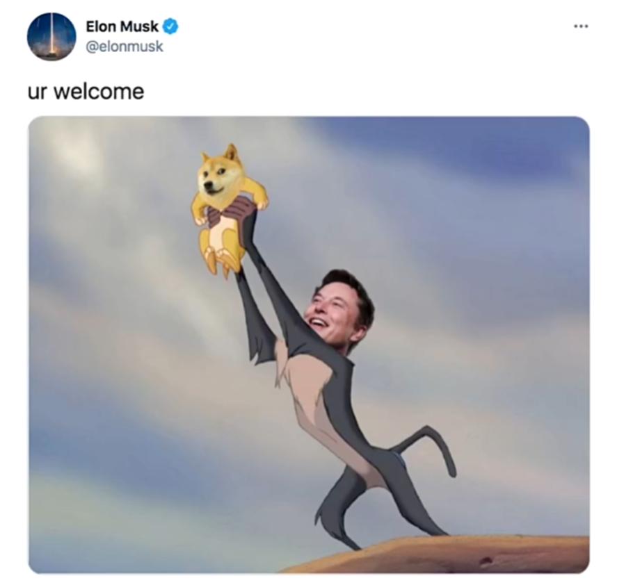 马斯克一直为加密货币站台,2019年4月,马斯克发布Twitter称狗狗币是他最喜欢的加密货币。并称自己为狗狗币“前CEO”。随后狗狗币暴涨。