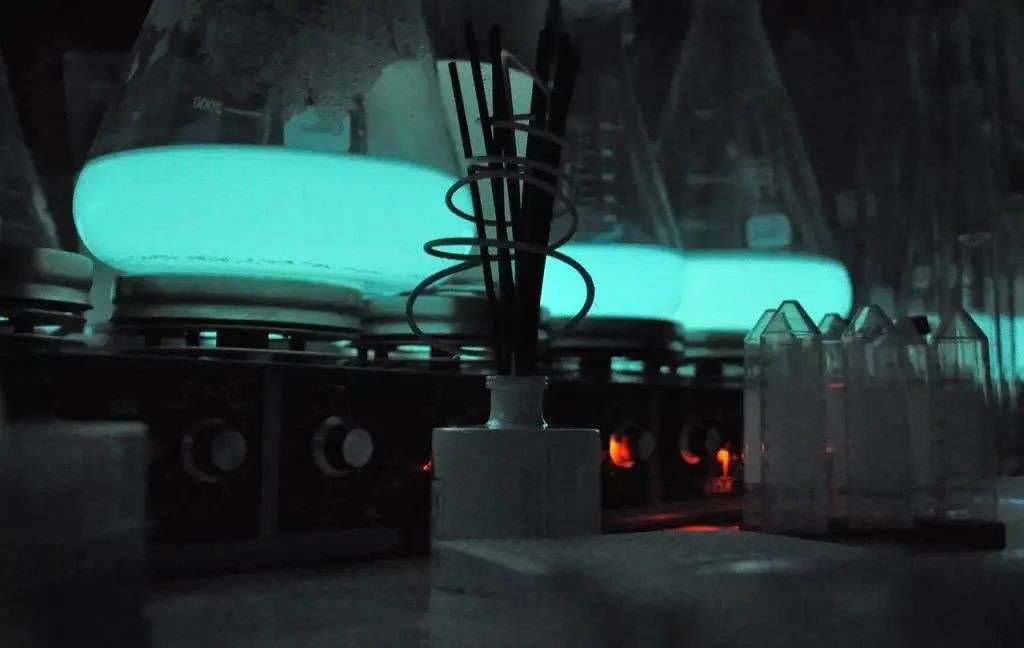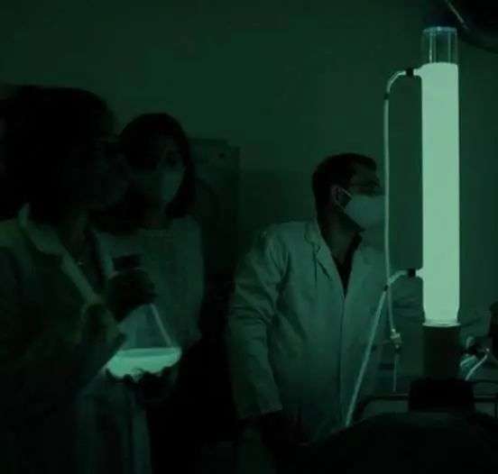 光是由这种细菌作为生物体在正常新陈代谢过程产生的,所以运行这种路灯,几乎不需要额外的能量。只需要添加含有基本营养素的混合物,再将空气泵入水中提供氧气,它们就能持续发出柔和的蓝绿色光芒,而且一点也不耗电。