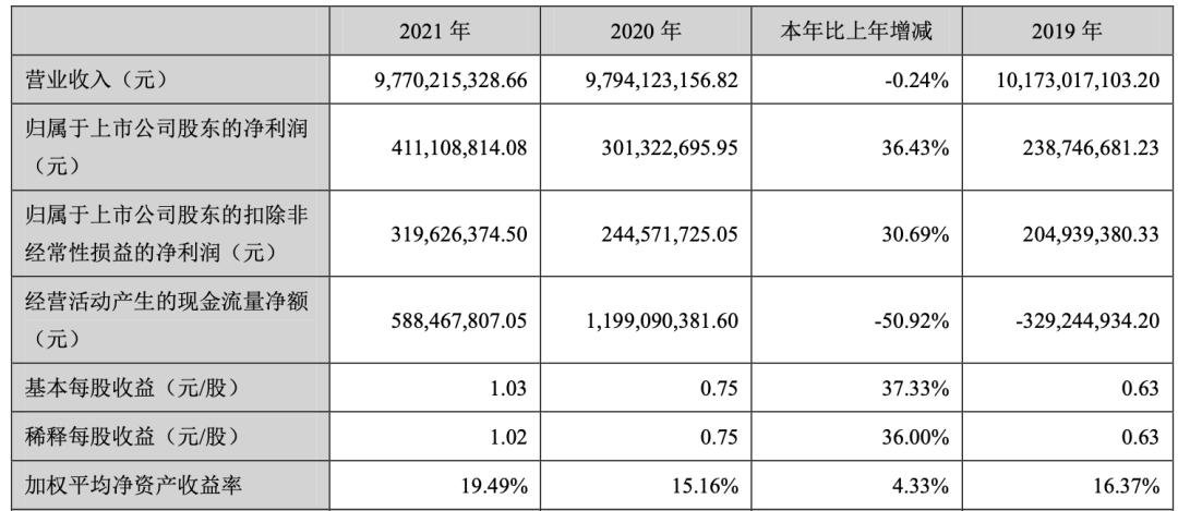但是2022年一同发布的一季报中显示,今年一季度,营收和净利润同比均出现较大幅度的下滑。其中,一季度营收30.89亿元,同比下滑15.85%;净利润1.61亿元,同比下滑48.75%;基本每股收益0.4元/股,同比下滑49.37%。