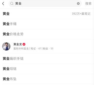 图 / 小红书搜索黄金关键词有392万+篇笔记