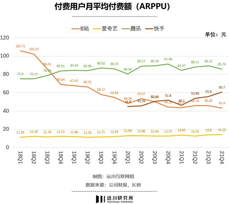 看到这里,爱奇艺可能会感受到一丝安慰:虽然经过这么多年的努力,ARPPU(付费用户人均收入)只涨了两块钱,但起码是安安稳稳,没有大起大落。