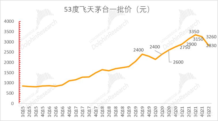 2021 年 9 月至今,随着旺季来临公司加大中秋发货、酱酒座谈会影响渠道和黄牛加速出货、拆箱政策边际放松等影响,茅台批价如期趋势回落。长桥海豚君认为在供给持续增加的情况下,长期看 2500 元左右是供需平衡点,短期则可能会因情绪导致价格超跌。