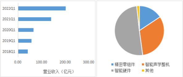 图1:歌尔股份2022年Q1营收及分项业务占比 数据来源:wind,36氪整理