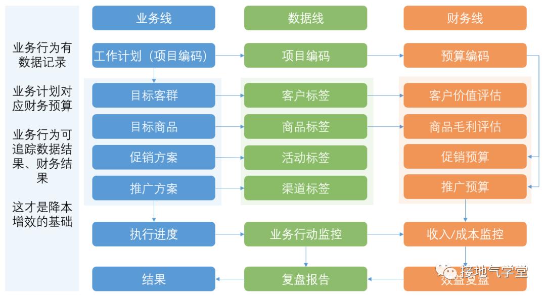 降本增效的本质,是通过数据手段,量化业务行为,核算业务成本,监控业务收益。量化才是最重要的一步。相应的,业务标签库,业财一体化流程,才是保障降本增效的根本。否则账目都是纸质单张,里边的描述和业务实际脱节,业务动作无法被数据监控,连基础的数据都核算不清,降本增效更无从谈起。