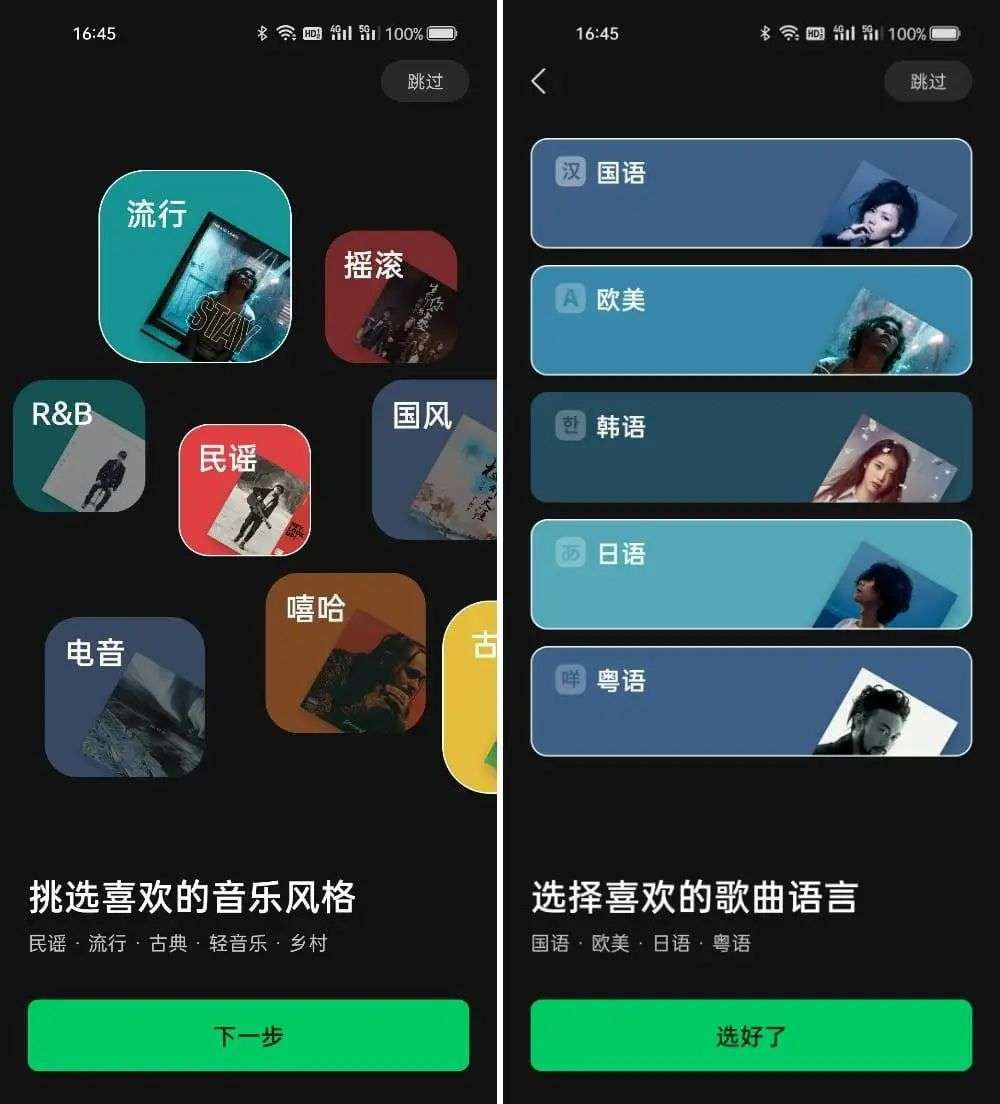 初次注册时,《汽水音乐》会提醒用户选择喜欢的音乐风格和语言,从而完成之后便可以推荐贴近用户喜好的音乐类型。