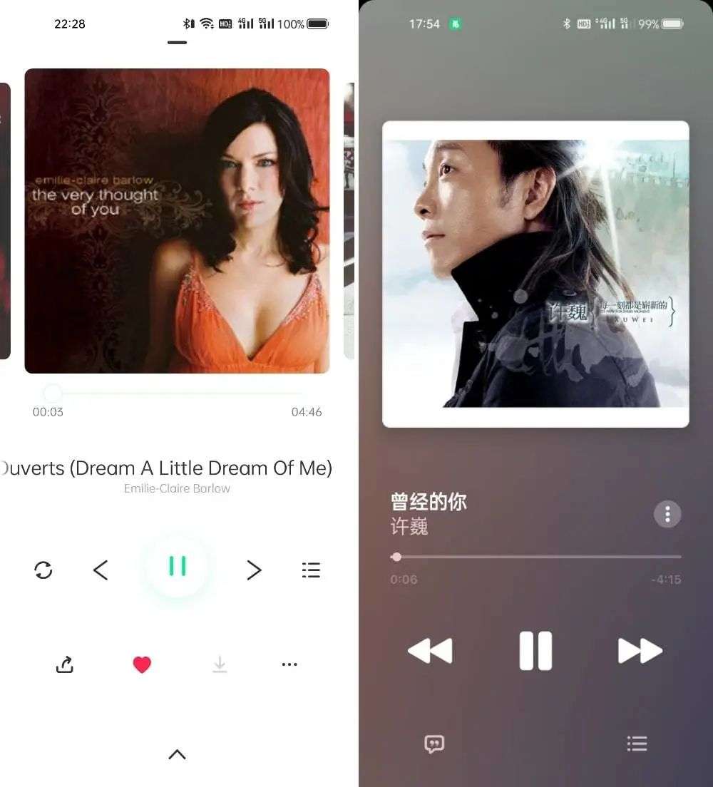 ▲传统的音乐播放界面:左侧为豆瓣 fm,右侧为 Apple Music
