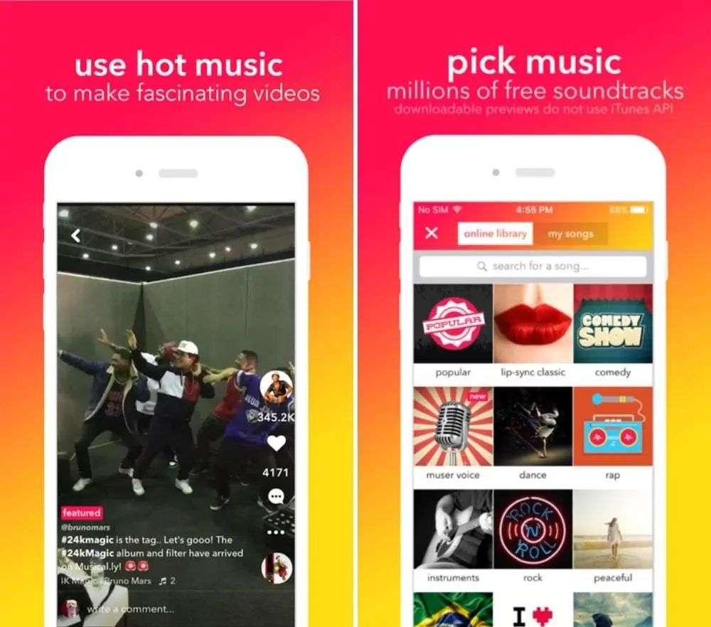 ▲musical.ly 界面,主打与音乐结合的 15s 短视频