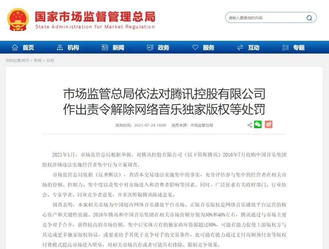 在这场持续数年的版权之战中,虾米音乐于 2021 年年初宣布关停。中国音乐市场从此只剩腾讯系和网易云音乐两大派系。而版权之争也在 2021 年 7 月 24 日以国家市场监督管理总局对腾讯独家版权的处罚决定为始落下帷幕。