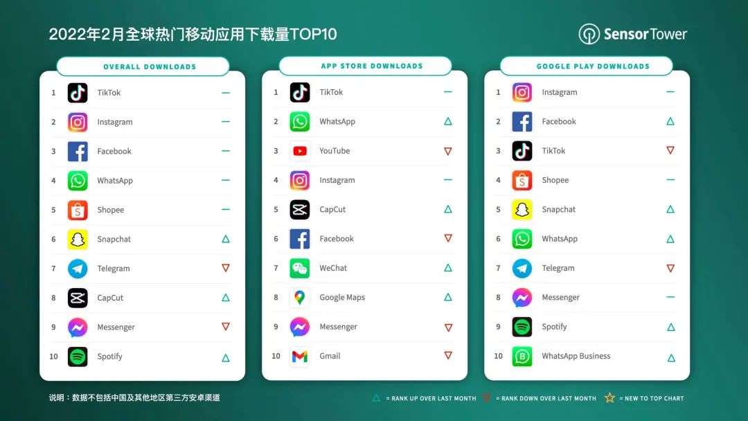 ▲2022 年 2 月份应用下载量排行 来源:SensorTower