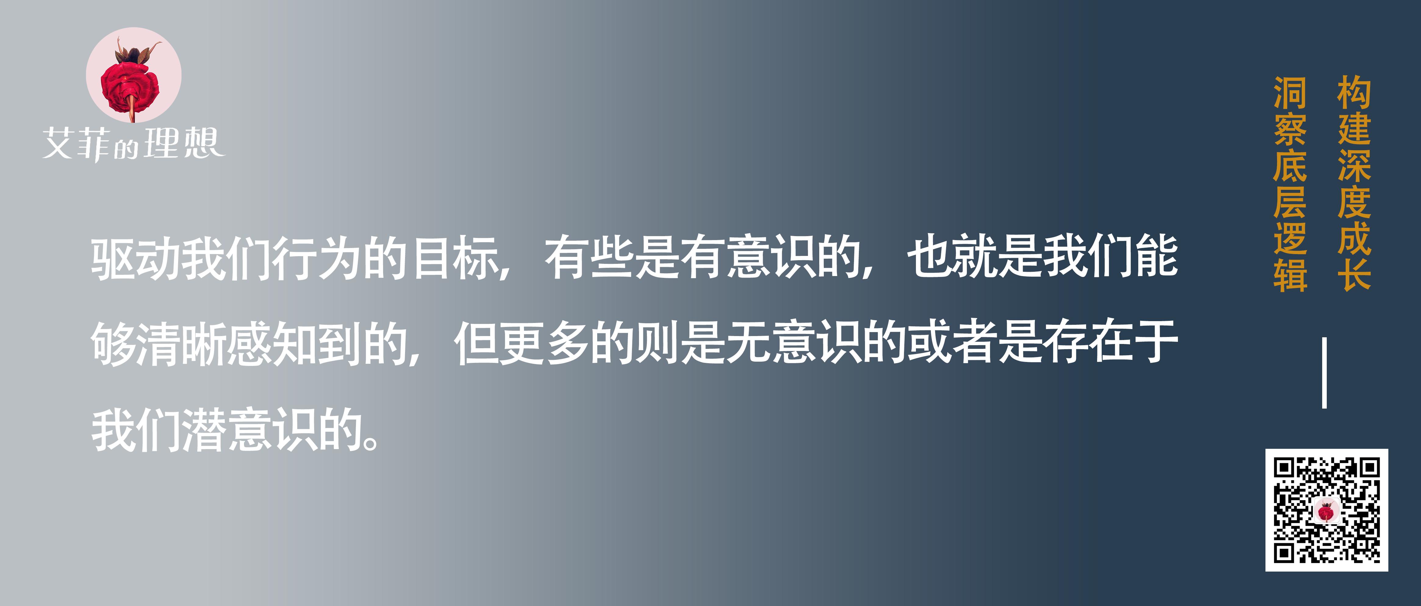 那是因为驱动我们行为的目标,有些是有意识的,也就是我们能够清晰感知到的,但更多的则是无意识的或者是存在于我们潜意识的。