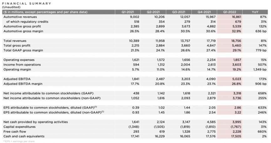 同样是受到疫情、芯片、供应链以及原材料成本上涨等多重因素影响,今年一季度的特斯拉,总收入依旧同比增长81%,达到187.56亿美元;总毛利54.60亿美元,较上年同期增长147%,毛利率更是达到29.1%。