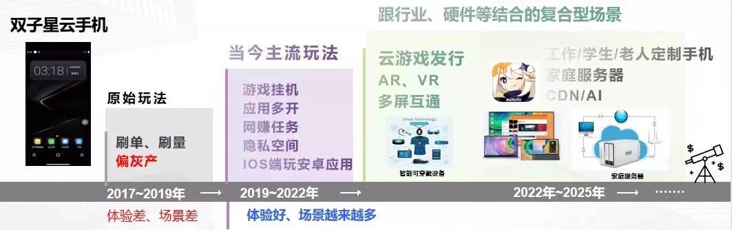 举例来看,云手机还可以作为一个网络云盘,用户在云手机上下载的音乐、视频等大容量文件,可以直接与云盘互通、上云而不占用手机内存;再比如通过云手机,也能同时开启多个应用,如微信多开等。