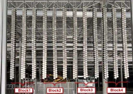 这是特斯拉在本月的德州超级工厂技术展上展示的CTC方案,在电芯排列上有一些区别,但总体方案还是将电芯直接排列在底盘上,以电池上盖代替座舱地板。我们后面再来看具体的区别。