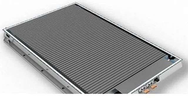 从图片上可以看出,每两排电芯之间放置有单根蛇形管,可对电芯的侧面进行冷却,其方向是垂直于行车方向,即沿车身宽度方向。这样做的好处是可以缩短蛇形管的长度,减少流阻,增加冷却均匀性。