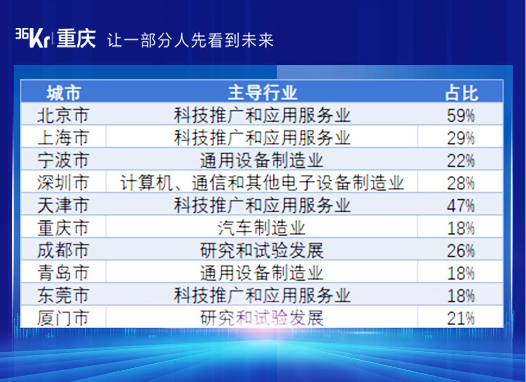 深圳市的主导行业为计算机、通信和其他电子设备制造业,占比28%;重庆的主导行业为汽车制造业,占比18%。