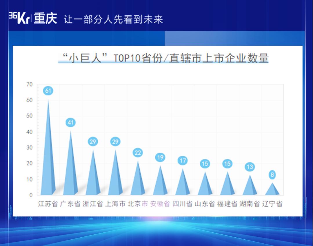 近日,36氪重庆通过天眼查数据梳理发现,东部沿海省份在专精特新“小巨人”数量、上市情况、投融资等方面,远超中西部。除一线城市外,宁波市的“小巨人”企业也有较为突出的表现。而重庆作为兼具“省”与“市”的属性的直辖市,“小巨人”企业的发展与领先的省、市相比,尚有着不小的差距。行业布局上呈现出北上抢滩科技,重庆、宁波誓守制造业的态势。